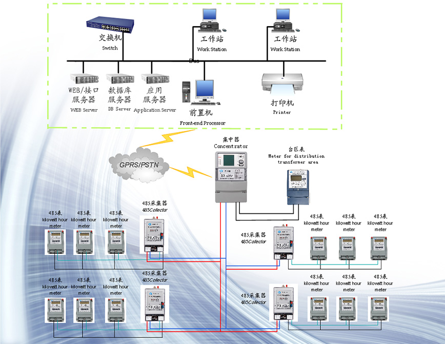 23、级联功能,可以级联集中器或配变,用一个GPRS和主站通信或直接和主站连接方便小区抄表。